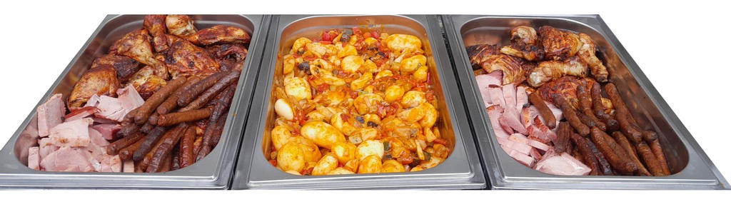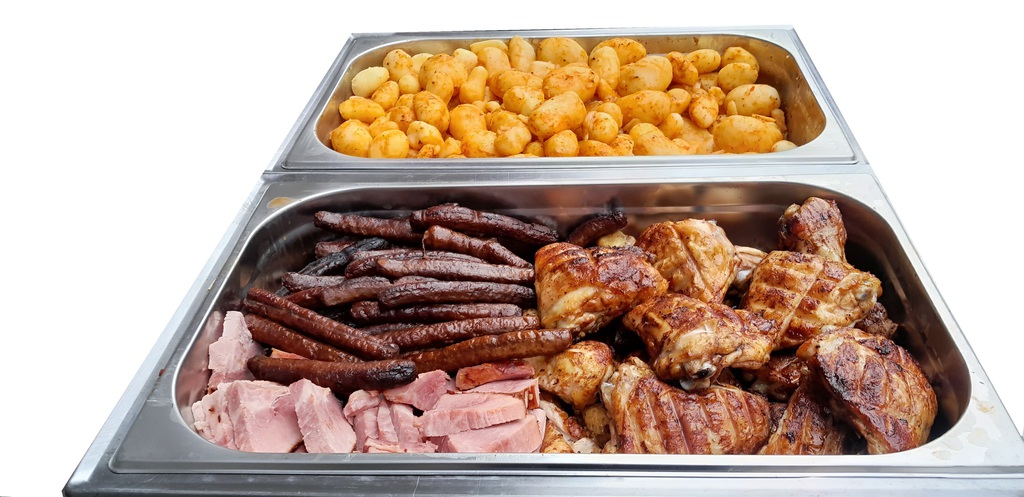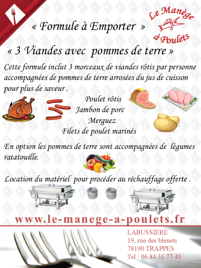 Rotisserie 3 viandes avec pomme de terre : 8 € ttc par personne