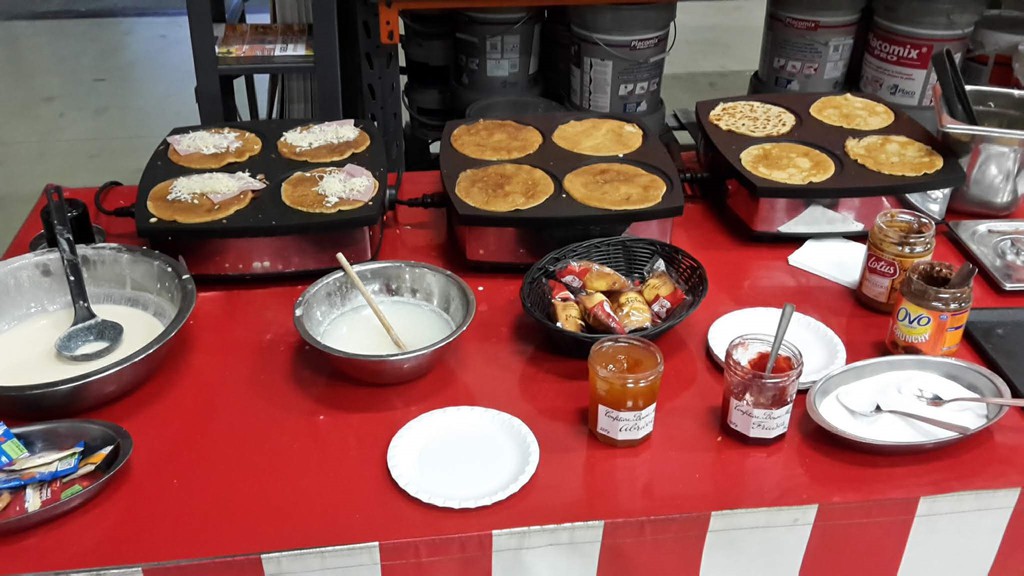 Réalisation de mini crèpes accompagnés de nutella , confitures ou simplement avec du sucre